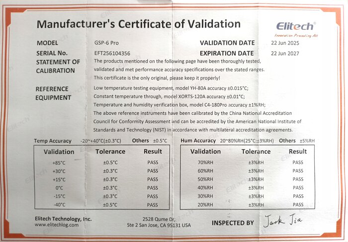 Każdy rejestrator posiada certyfikat kalibracji czujnika temperatury przypisany do konkretnego egzemplarza, który dostarczony jest razem z rejestratorem.