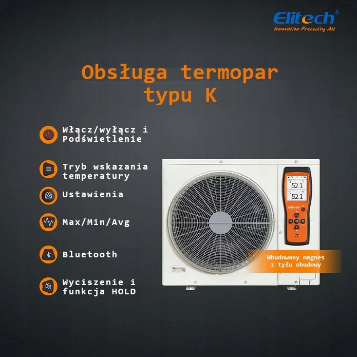 Miernik przeznaczony do profesjonalnego użytkowania w branży chłodnictwa, pomp ciepła i motoryzacji. Współpracuje z wymiennymi sodami termoelektrycznymi typu K. Charakteryzuje się wysoką dokładnością pomiaru, uniwersalnością zastosowań, szerokim zakresem pomiarowym oraz dużą trwałością i niezawodnością.